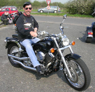 Member No 6481 Dave Rutley Dragstar XVS1100 Dave who is originally from Yorkshire (that'l explain t' flat cap, and t' clogs.) now lives in Wiltshire and joined the club in 2010
